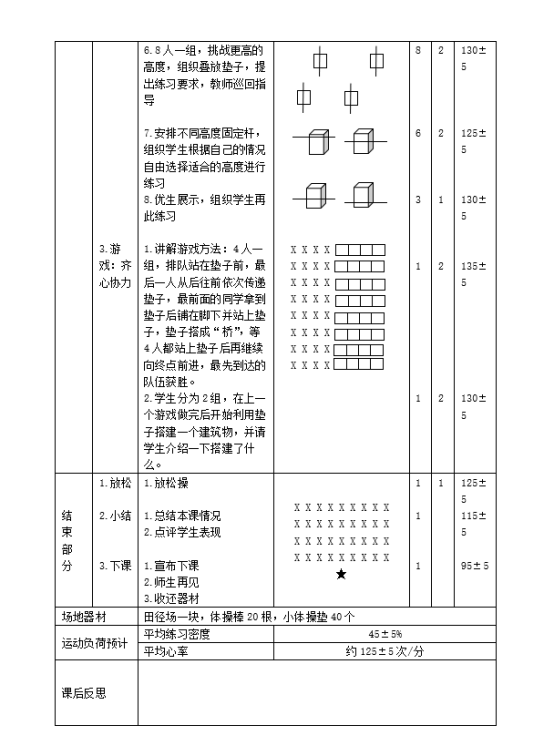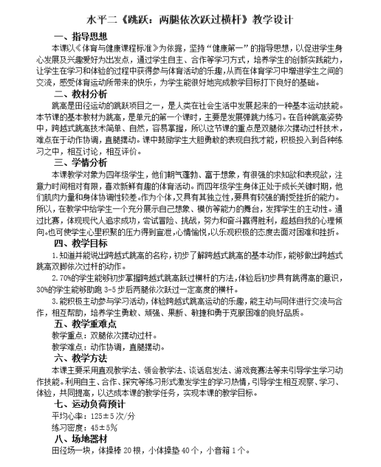 本次课由刘娜老师执教,紧扣水平二学生身心发展特点设计教学。课堂采用 “自主尝试 — 小组合作 — 分层练习 — 优生展示” 的递进式教学模式,通过叠放垫子、调整横杆高度等方式,让不同水平学生都能获得成就感。趣味游戏“踏石过河”既巩固了协作意识,又有效调节课堂氛围,实现“学中乐、乐中学”。同时,教师注重动作示范与个性化指导,结合学生互评,强化了“双腿依次摆动过杆”的核心技能,课堂运动负荷合理,练习密度与心率达标。