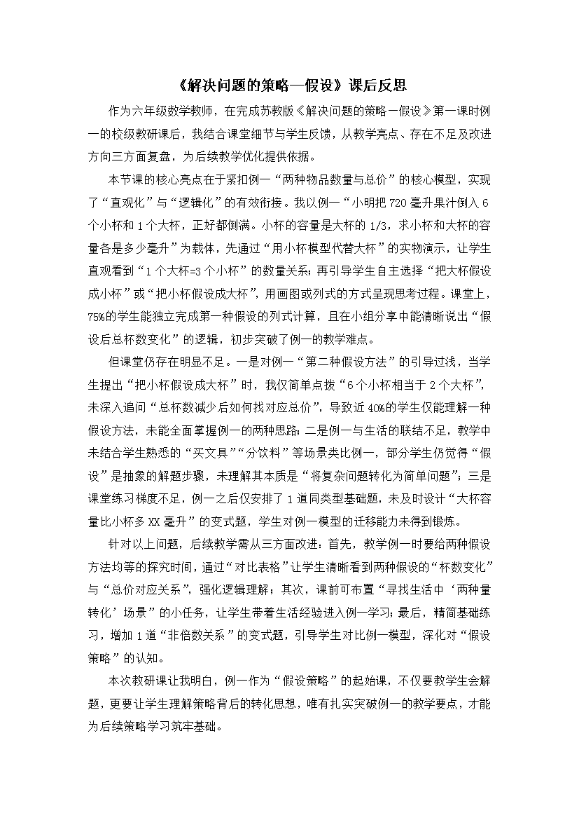 《解决问题的策略——假设》教学反思