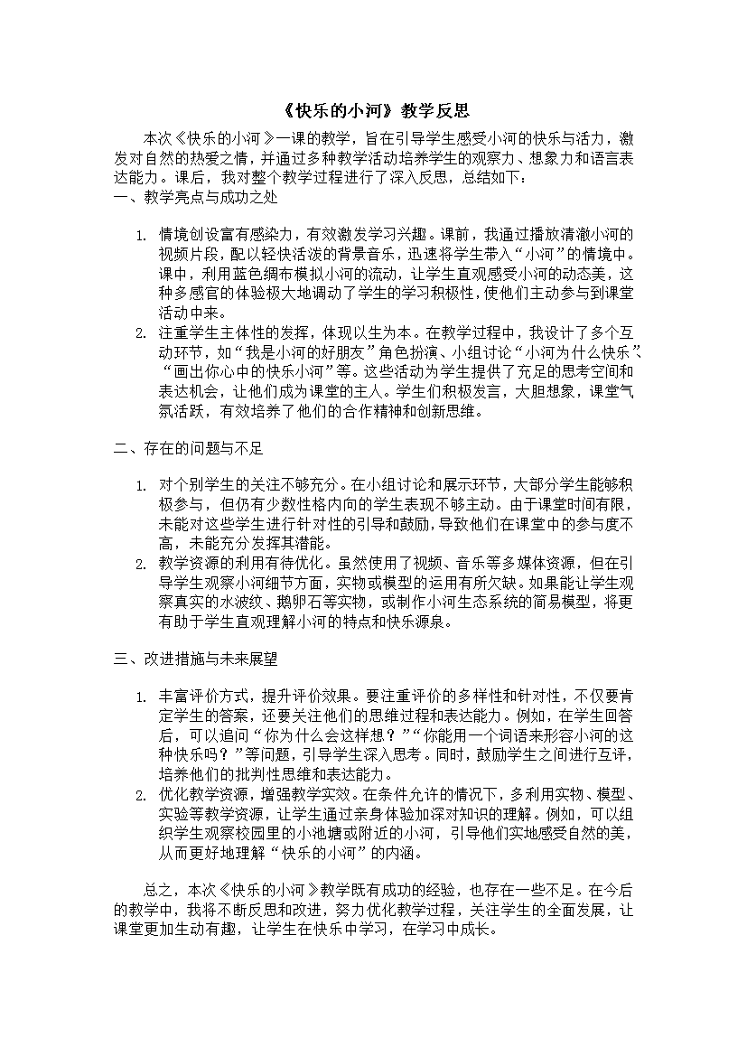 《快乐的小河》教学反思