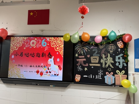 岁末迎新,暖意融融。为丰富班级文化生活,让孩子们在欢乐氛围中迎接新年,一(1)班于2025年12月31日下午12:30,在班级教室成功举办以“小马哒哒迎新春,一(1)班里乐融融”为主题的元旦联欢会。全体师生及2-3名家长志愿者共同参与,整场活动流程有序、趣味盎然,圆满完成各项环节。